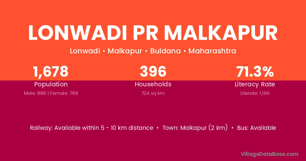Lonwadi Pr Malkapur village has a total population of 1,678 people, of which 889 are males and 789 are females.
