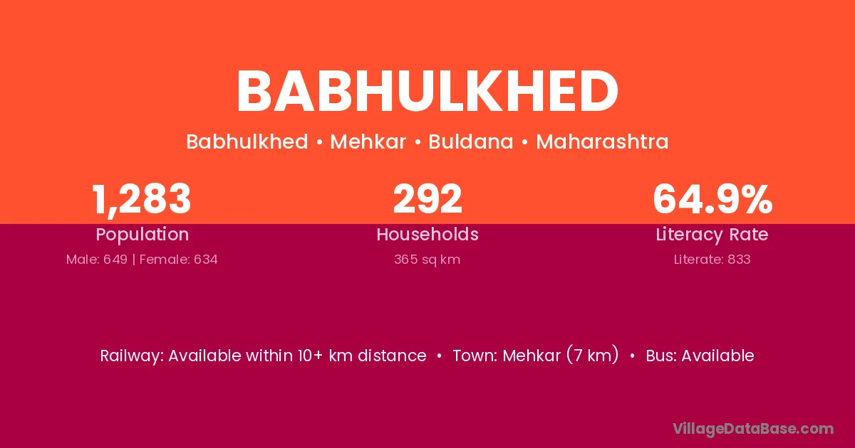 Babhulkhed village has a total population of 1,283 people, of which 649 are males and 634 are females.