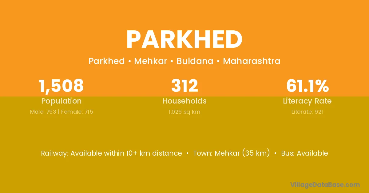 Mehkar (35 km) is the nearest town to Parkhed village for major economic activities and is located approximately 35 km away.