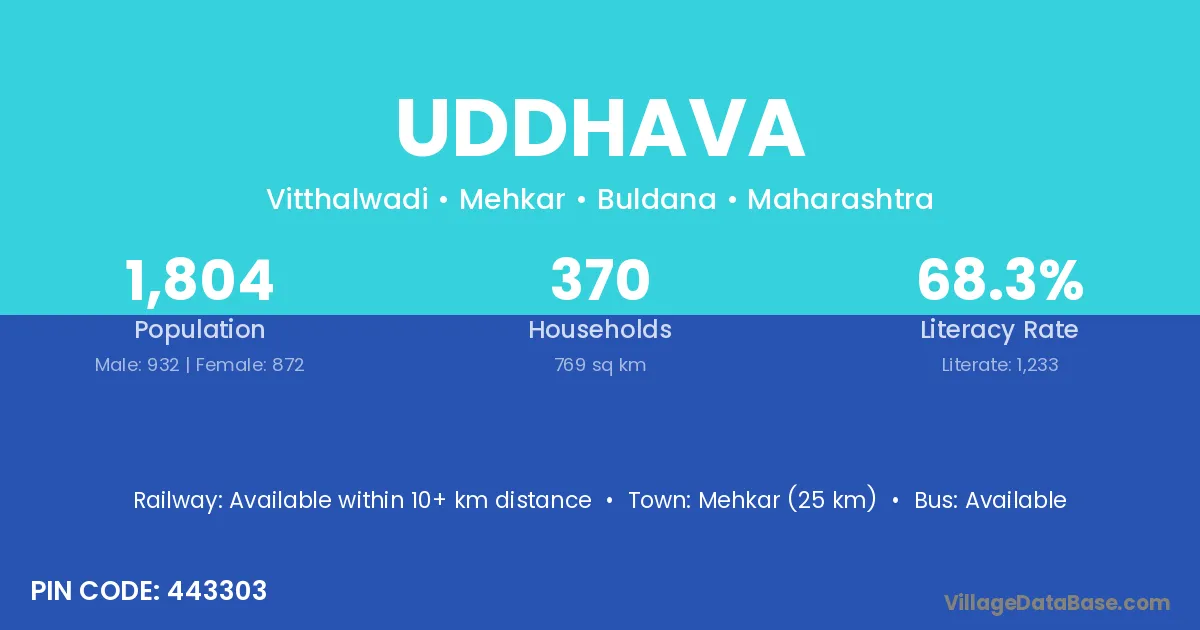 Mehkar (25 km) is the nearest town to Uddhava village for major economic activities and is located approximately 25 km away.