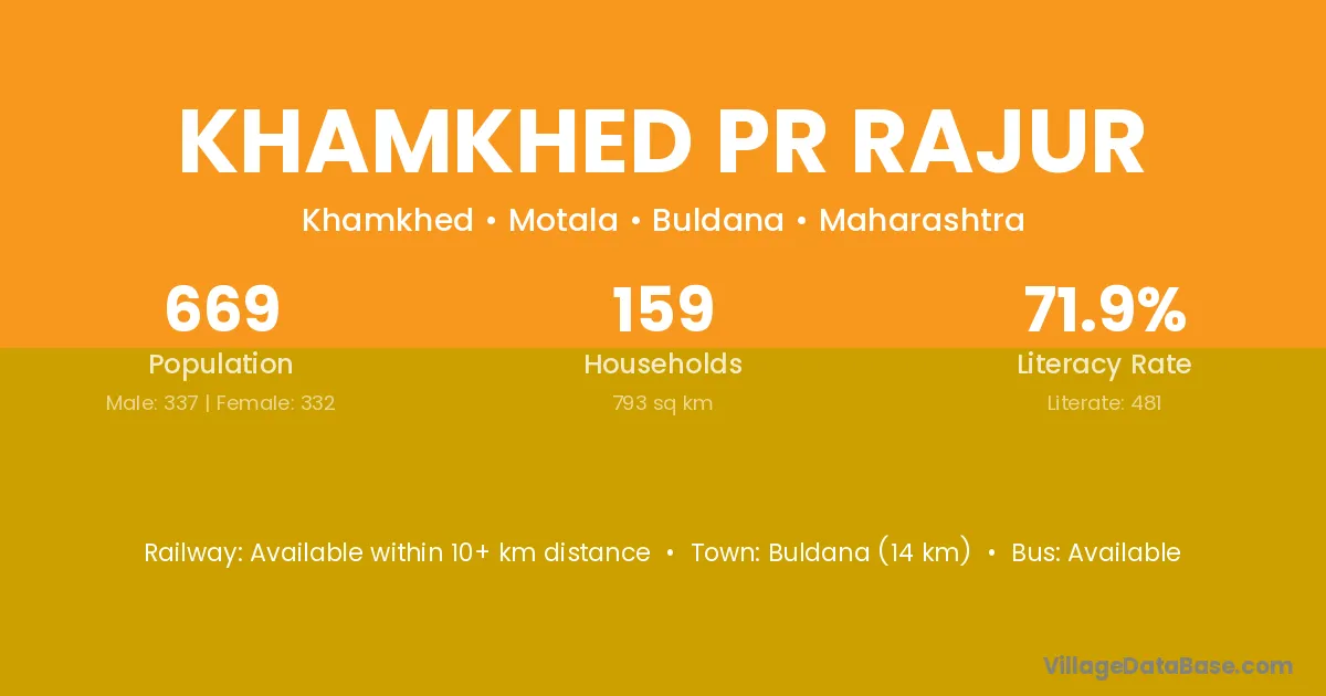 Khamkhed Pr Rajur village has a total population of 669 people, of which 337 are males and 332 are females.