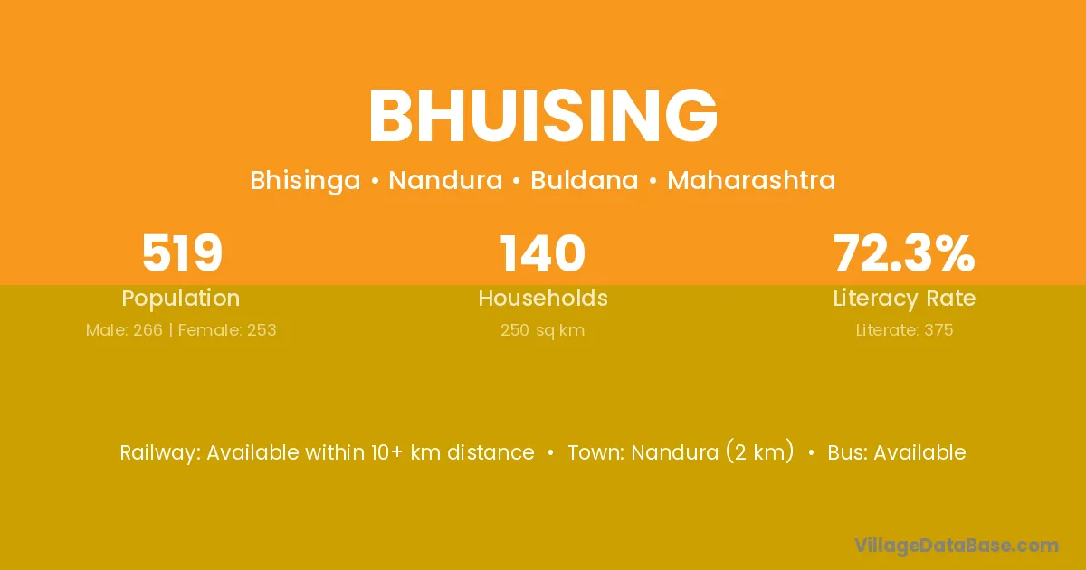 Nandura (2 km) is the nearest town to Bhuising village for major economic activities and is located approximately 2 km away.