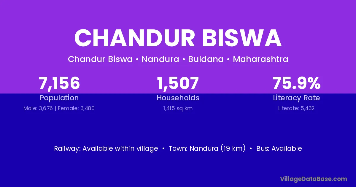 Nandura (19 km) is the nearest town to Chandur Biswa village for major economic activities and is located approximately 19 km away.