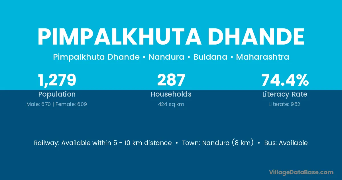 Pimpalkhuta Dhande village has a total population of 1,279 people, of which 670 are males and 609 are females.