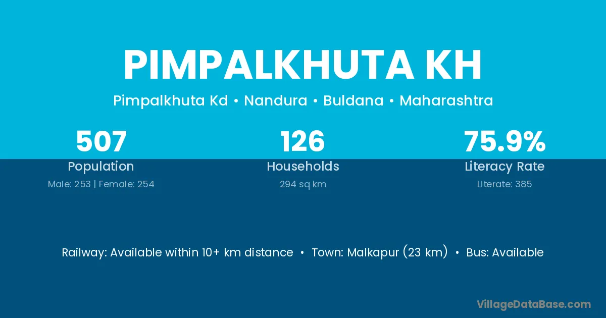Pimpalkhuta Kh village has a total population of 507 people, of which 253 are males and 254 are females.