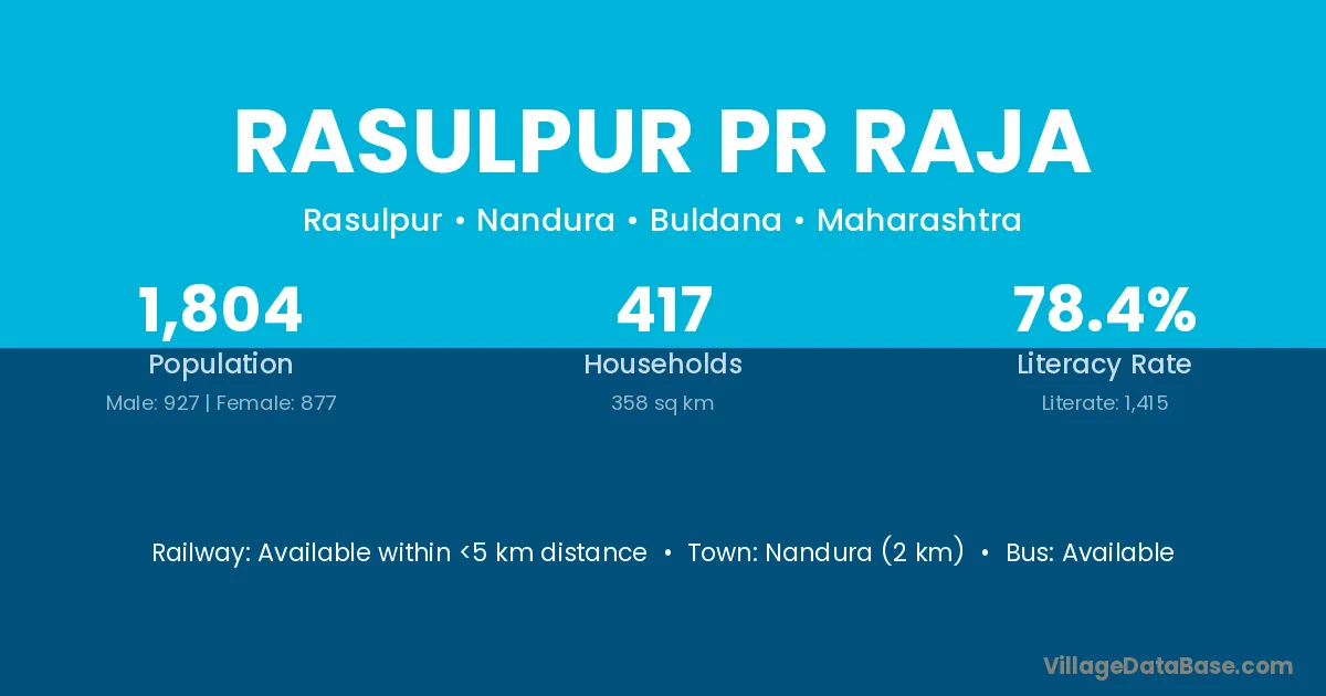 Nandura (2 km) is the nearest town to Rasulpur Pr Raja village for major economic activities and is located approximately 2 km away.