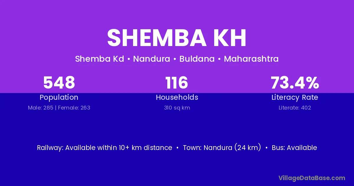 Nandura (24 km) is the nearest town to Shemba Kh village for major economic activities and is located approximately 24 km away.