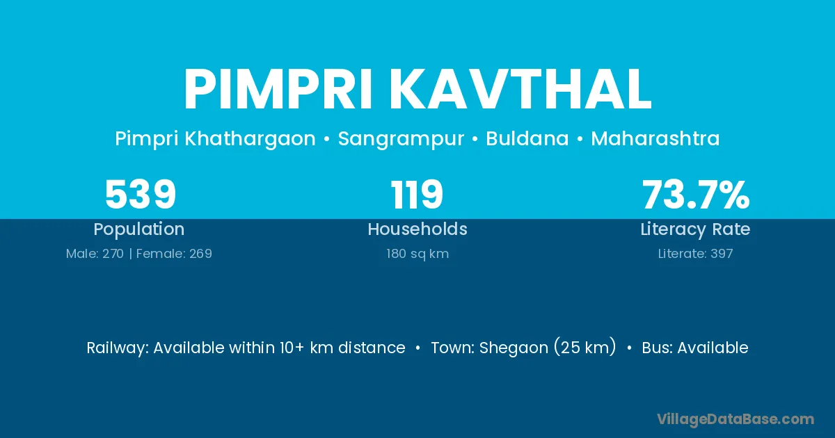 Pimpri Kavthal village has a total population of 539 people, of which 270 are males and 269 are females.