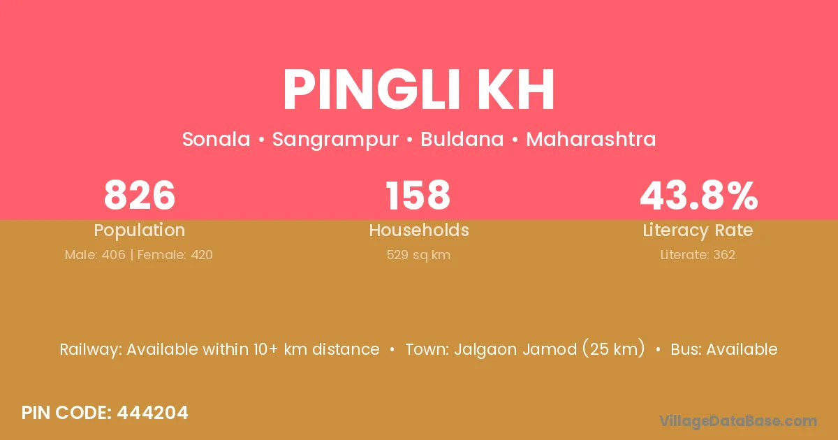 Jalgaon Jamod (25 km) is the nearest town to Pingli Kh village for major economic activities and is located approximately 25 km away.