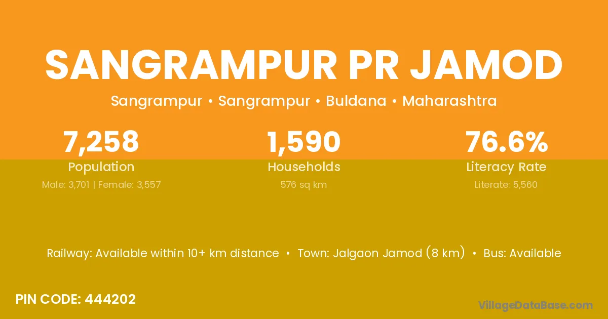 Sangrampur Pr Jamod village has a total population of 7,258 people, of which 3,701 are males and 3,557 are females.