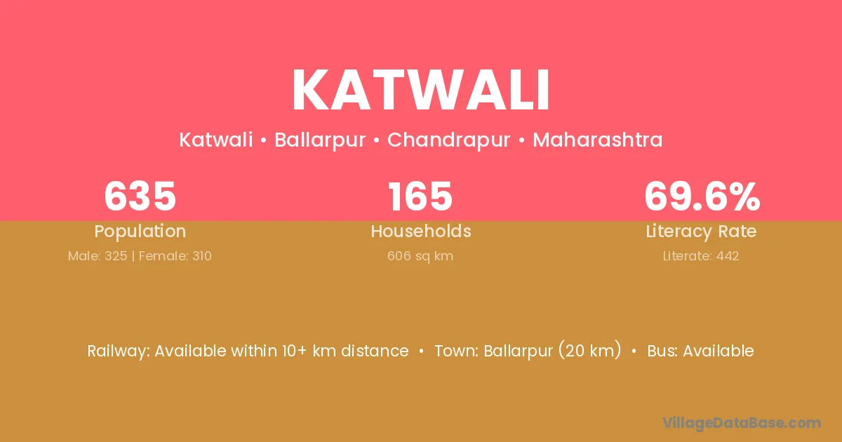 Ballarpur (20 km) is the nearest town to Katwali village for major economic activities and is located approximately 20 km away.