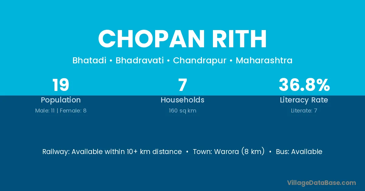 Warora (8 km) is the nearest town to Chopan Rith village for major economic activities and is located approximately 8 km away.