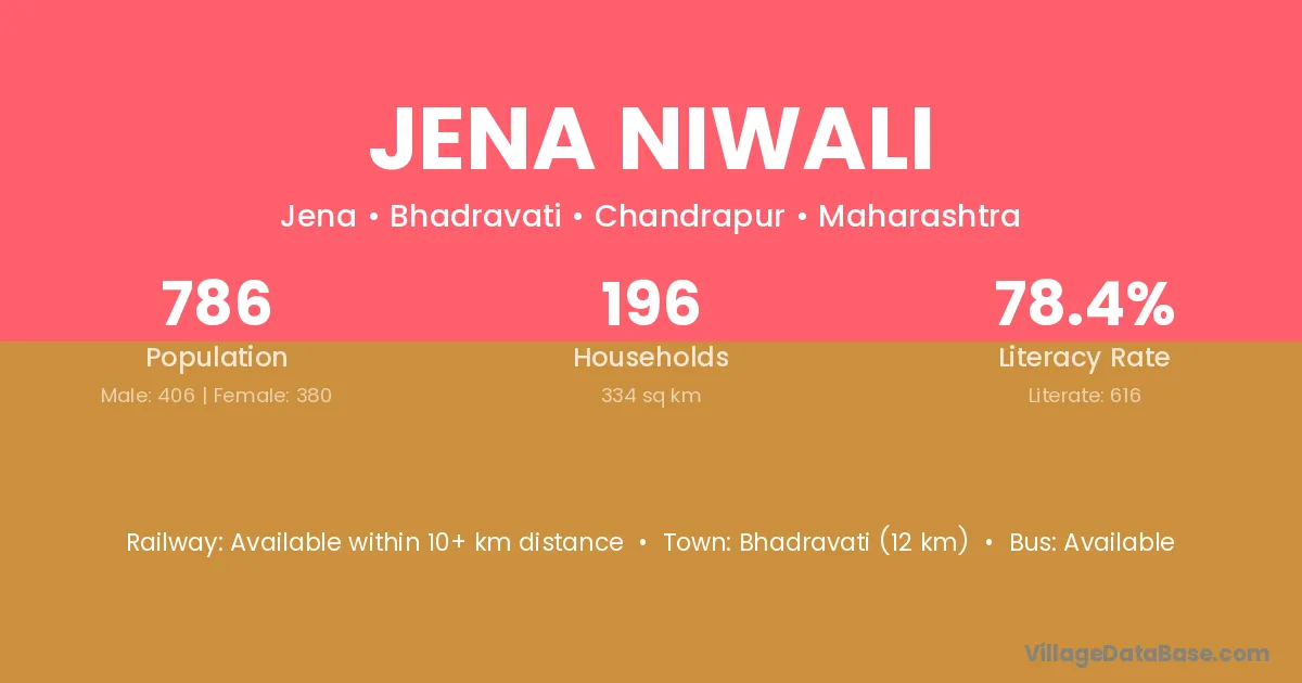 Jena Niwali village has a total population of 786 people, of which 406 are males and 380 are females.
