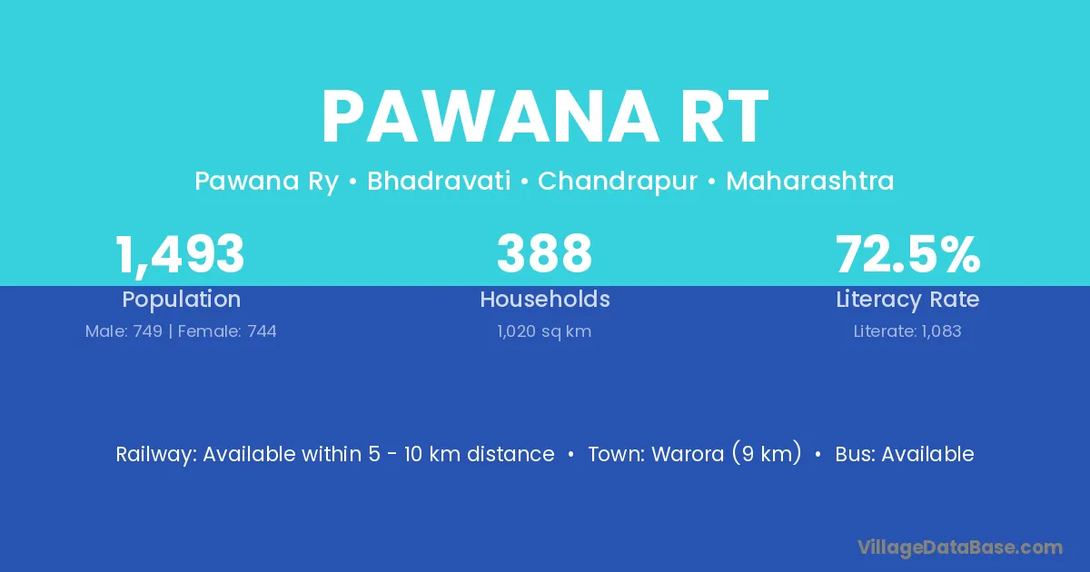 Warora (9 km) is the nearest town to Pawana Rt village for major economic activities and is located approximately 9 km away.
