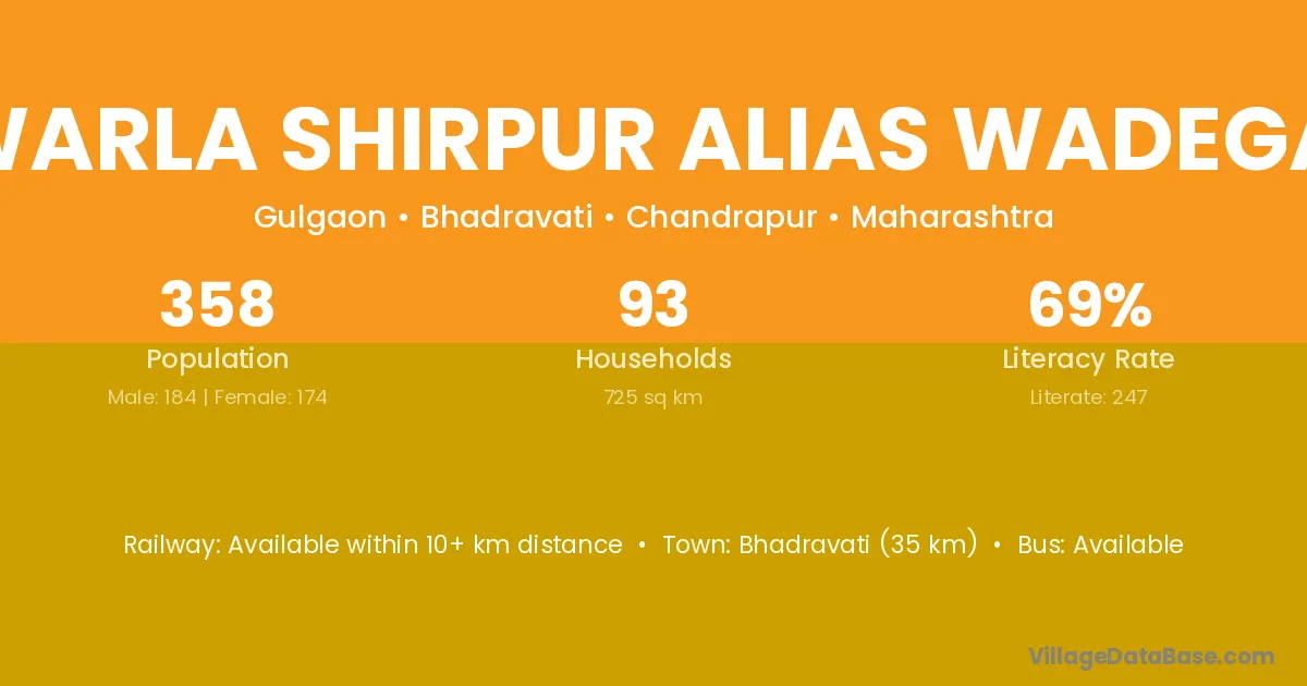Sawarla Shirpur Alias Wadegaon village has a total population of 358 people, of which 184 are males and 174 are females.