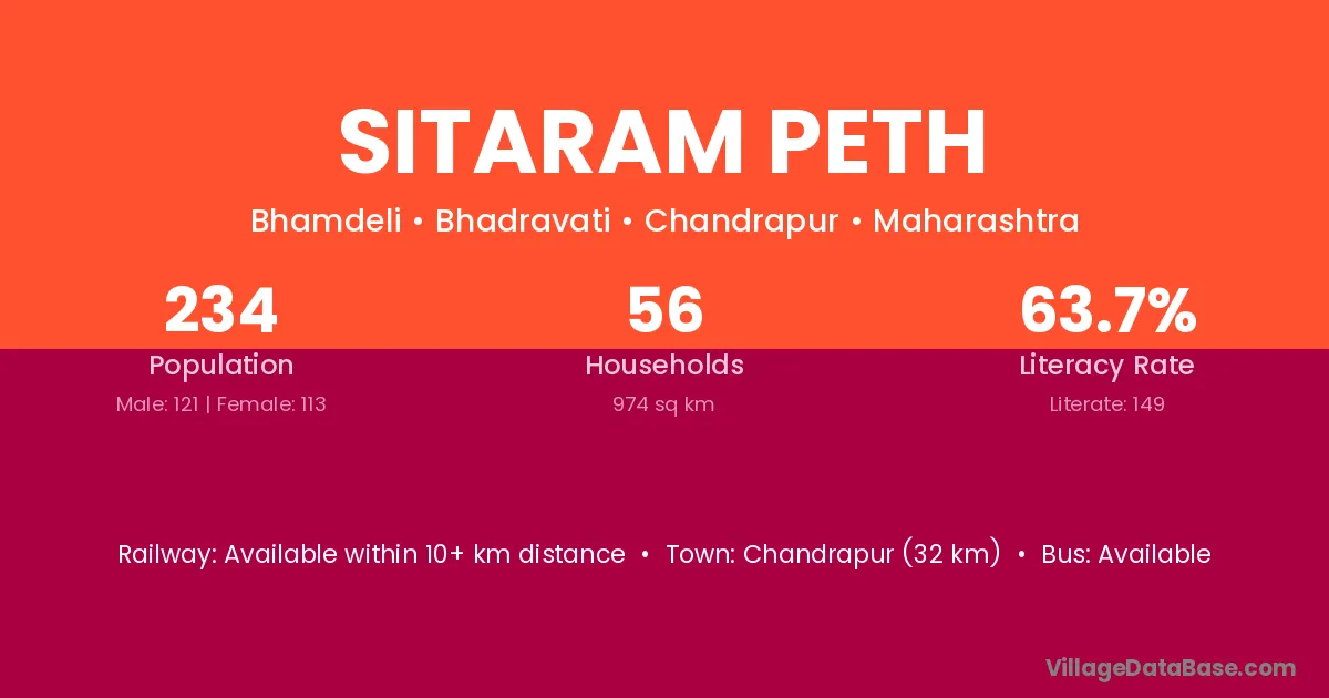Chandrapur (32 km) is the nearest town to Sitaram Peth village for major economic activities and is located approximately 32 km away.