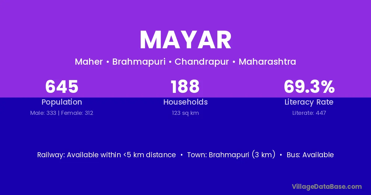 Brahmapuri (3 km) is the nearest town to Mayar village for major economic activities and is located approximately 3 km away.