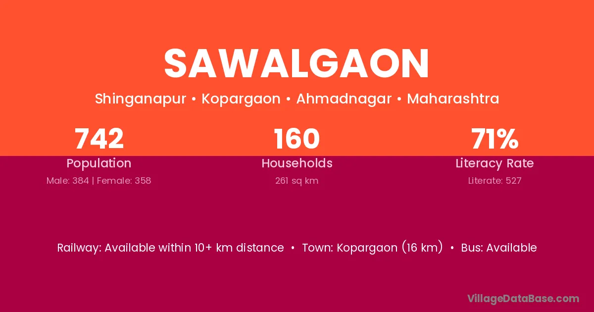 Brahmapuri (10 km) is the nearest town to Sawalgaon village for major economic activities and is located approximately 10 km away.