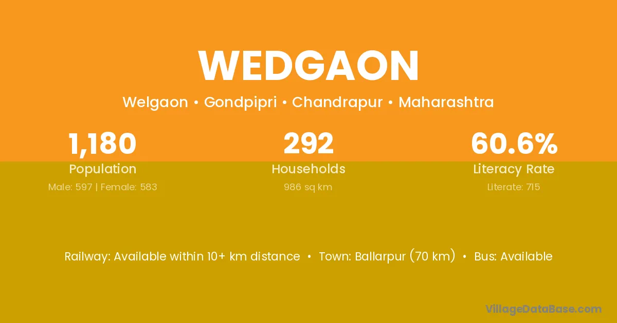 Ballarpur (70 km) is the nearest town to Wedgaon village for major economic activities and is located approximately 70 km away.