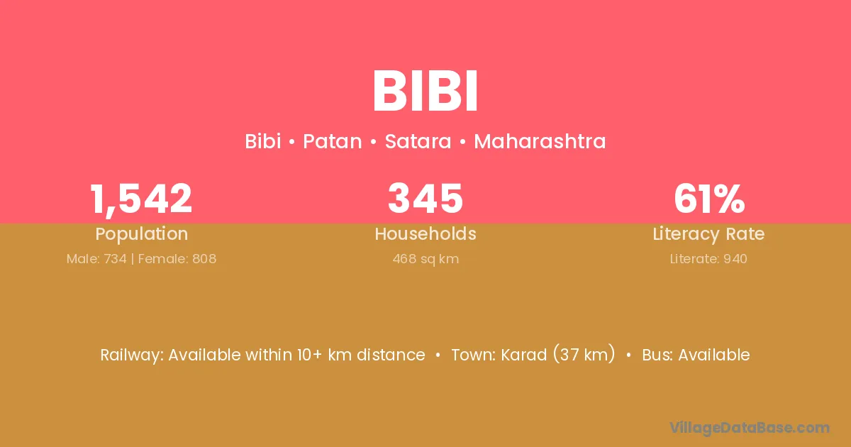 Rajura (27 km) is the nearest town to Bibi village for major economic activities and is located approximately 27 km away.