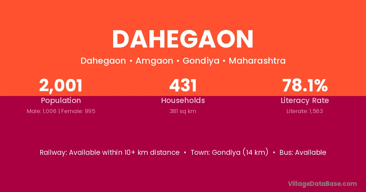 Korpana is the nearest town to Dahegaon village for major economic activities