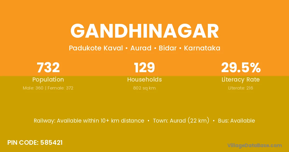 The literacy rate of Gandhinagar village is 67.45%. Male literacy stands at 73.70% and female literacy at 61.27%.