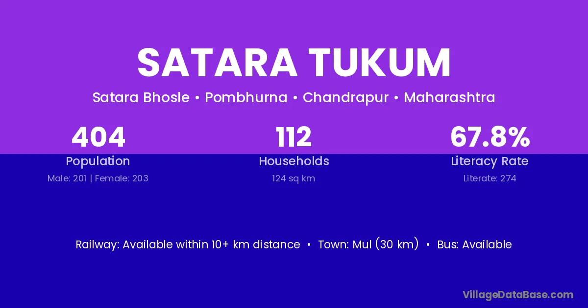 Mul (30 km) is the nearest town to Satara Tukum village for major economic activities and is located approximately 30 km away.