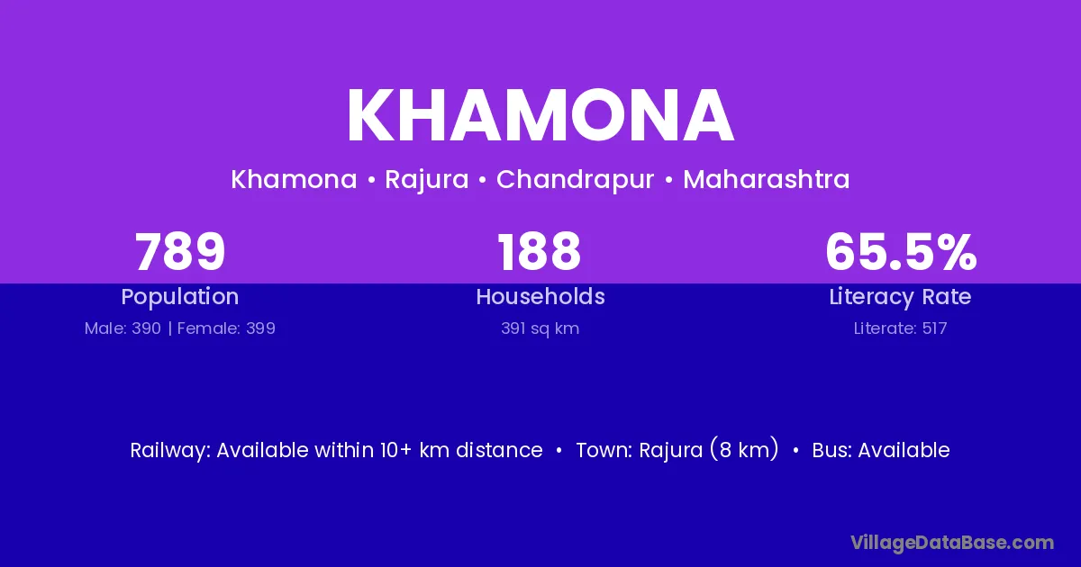 Rajura (8 km) is the nearest town to Khamona village for major economic activities and is located approximately 8 km away.