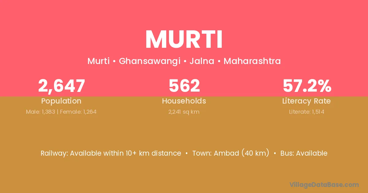 Rajura (17 km) is the nearest town to Murti village for major economic activities and is located approximately 17 km away.