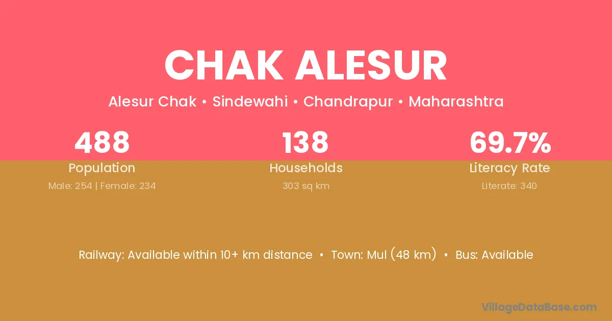 Mul (48 km) is the nearest town to Chak Alesur village for major economic activities and is located approximately 48 km away.
