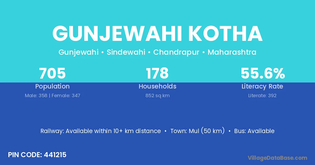 Mul (50 km) is the nearest town to Gunjewahi Kotha village for major economic activities and is located approximately 50 km away.