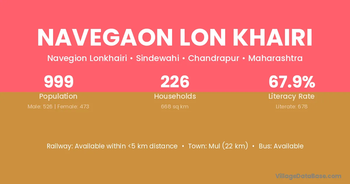 Mul (22 km) is the nearest town to Navegaon Lon Khairi village for major economic activities and is located approximately 22 km away.