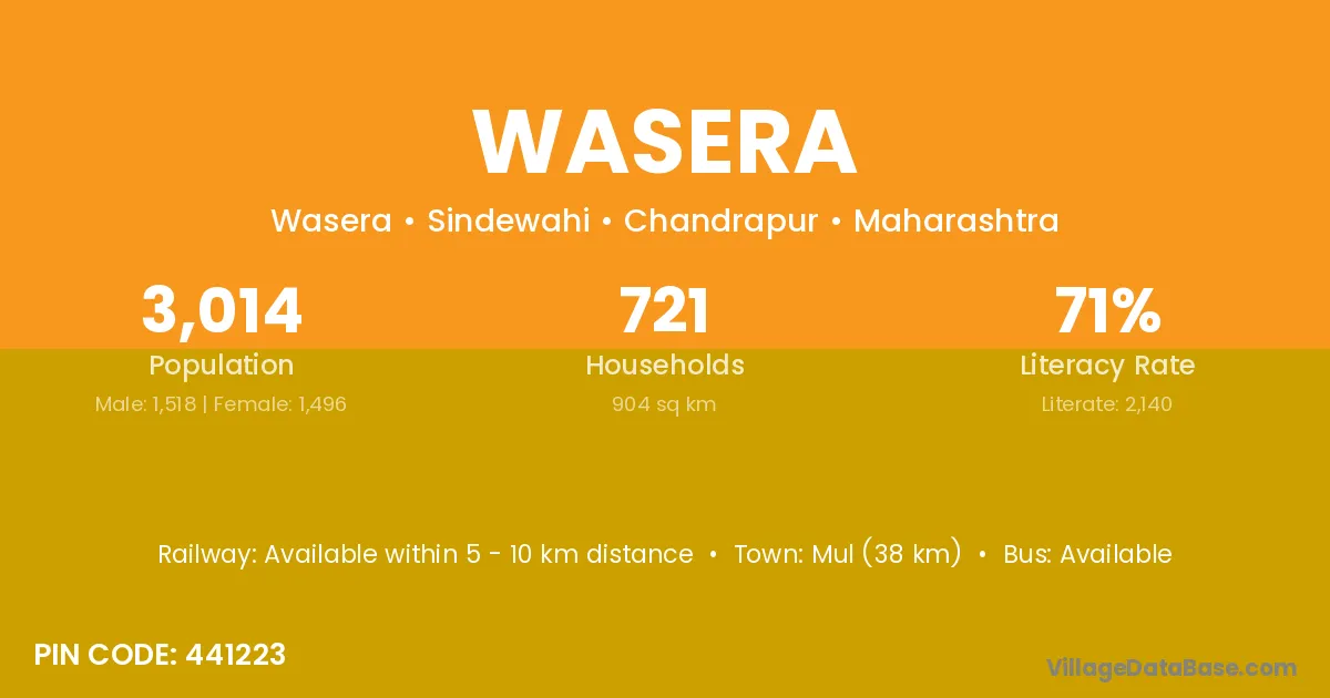 Mul (38 km) is the nearest town to Wasera village for major economic activities and is located approximately 38 km away.