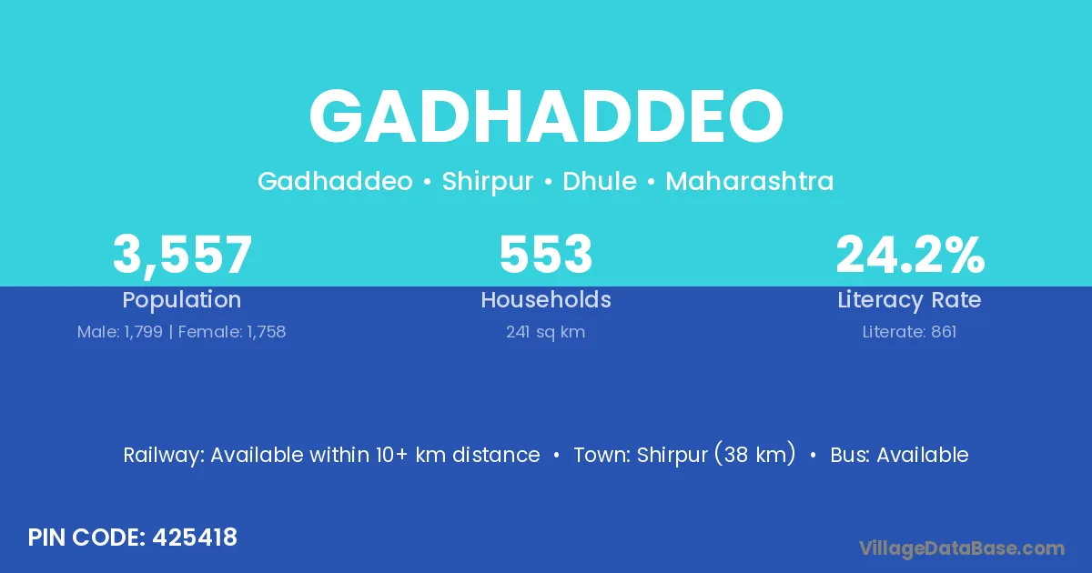 Shirpur (38 km) is the nearest town to Gadhaddeo village for major economic activities and is located approximately 38 km away.