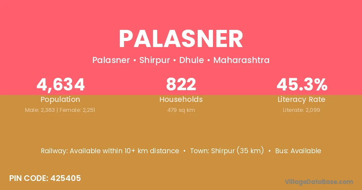 Shirpur (35 km) is the nearest town to Palasner village for major economic activities and is located approximately 35 km away.