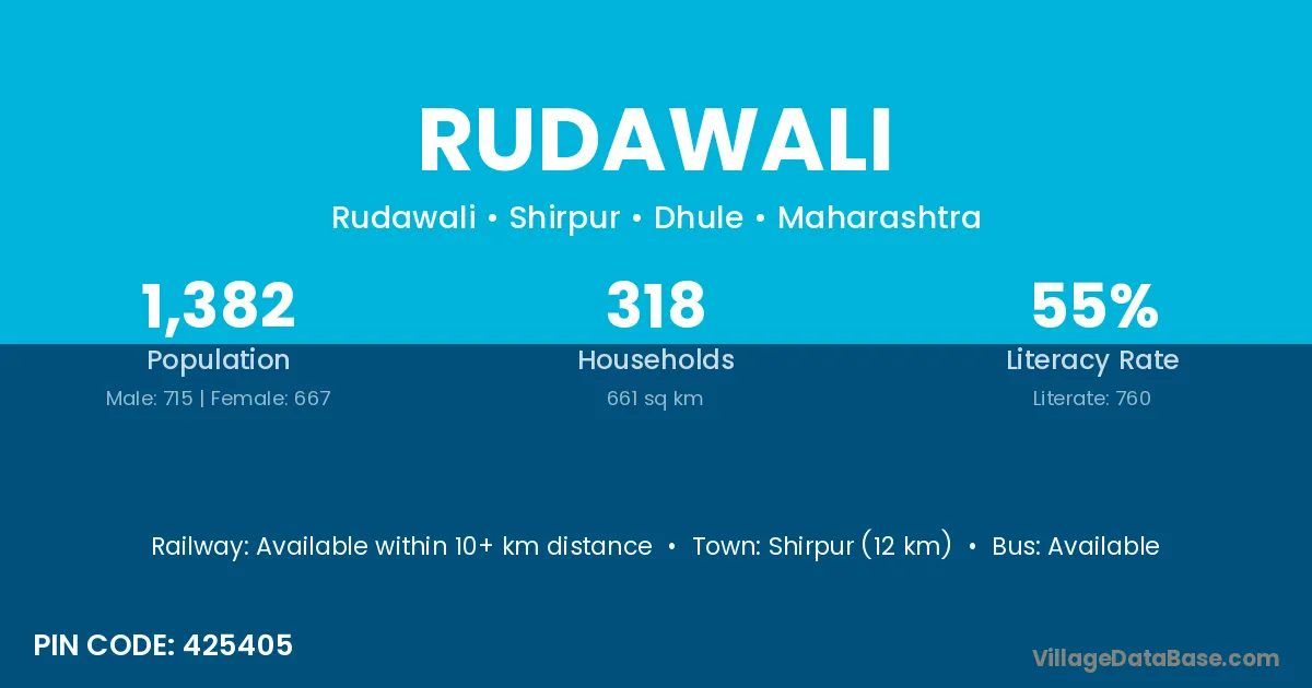 Shirpur (12 km) is the nearest town to Rudawali village for major economic activities and is located approximately 12 km away.
