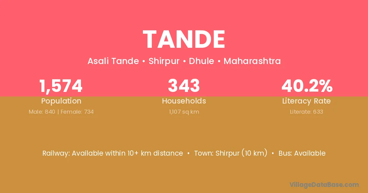Shirpur (10 km) is the nearest town to Tande village for major economic activities and is located approximately 10 km away.