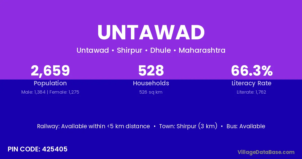 Shirpur (3 km) is the nearest town to Untawad village for major economic activities and is located approximately 3 km away.