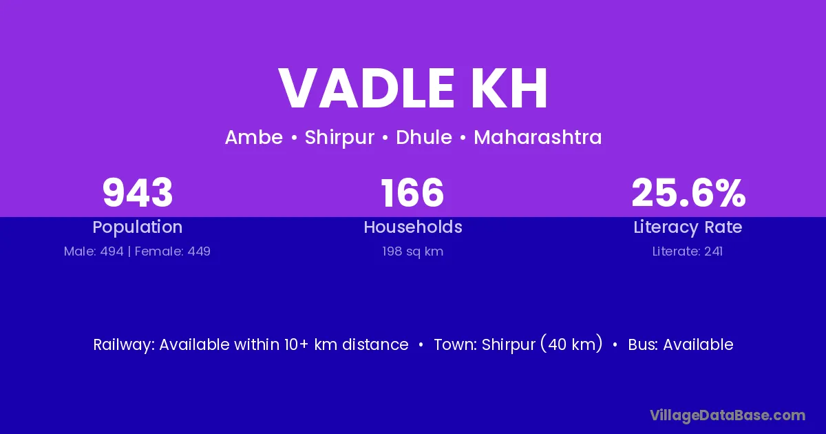 Shirpur (40 km) is the nearest town to Vadle Kh village for major economic activities and is located approximately 40 km away.
