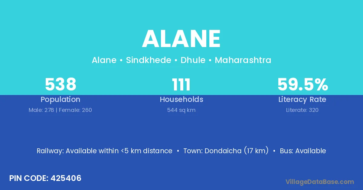 Dondaicha (17 km) is the nearest town to Alane village for major economic activities and is located approximately 17 km away.