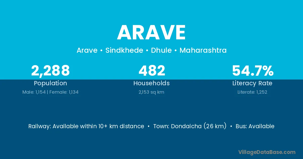 Dondaicha (26 km) is the nearest town to Arave village for major economic activities and is located approximately 26 km away.