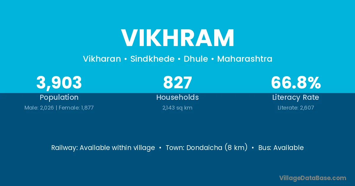 Dondaicha (8 km) is the nearest town to Vikhram village for major economic activities and is located approximately 8 km away.