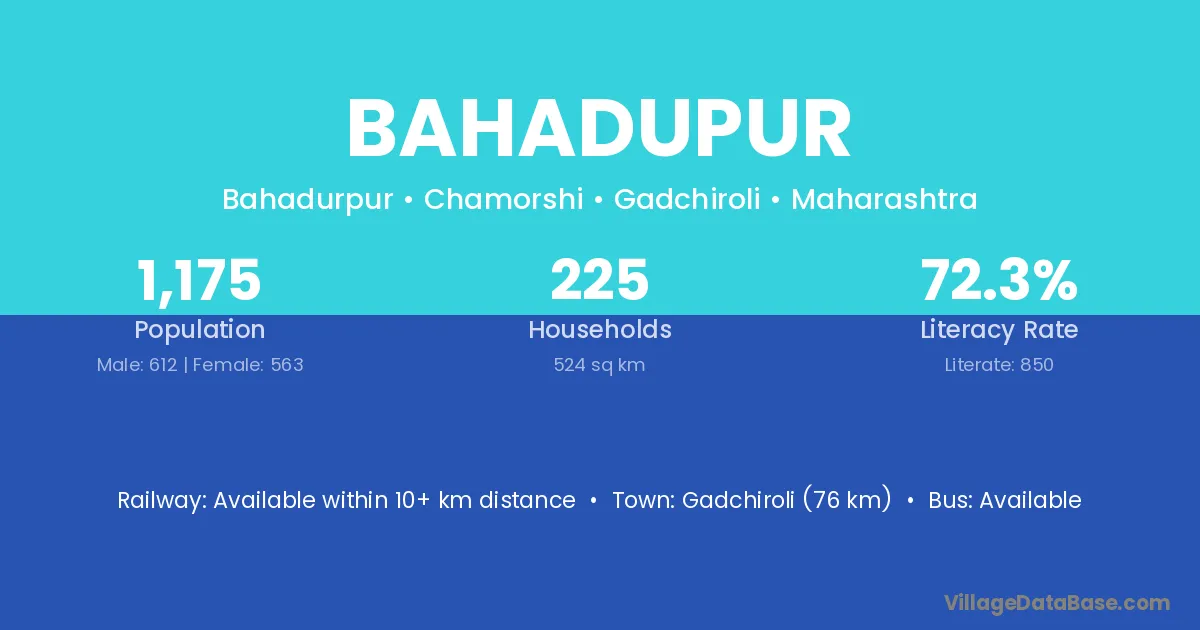 Gadchiroli (76 km) is the nearest town to Bahadupur village for major economic activities and is located approximately 76 km away.