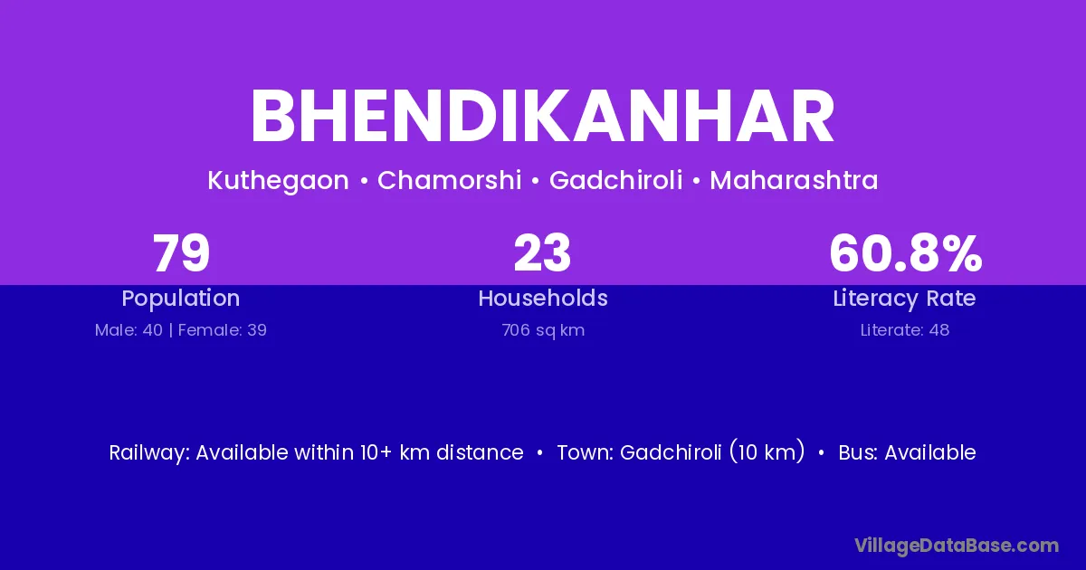 Gadchiroli (10 km) is the nearest town to Bhendikanhar village for major economic activities and is located approximately 10 km away.