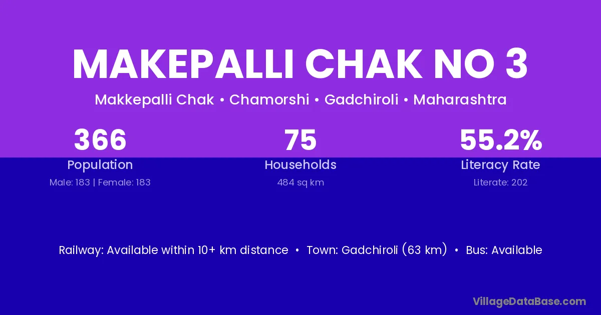 Gadchiroli (63 km) is the nearest town to Makepalli Chak No 3 village for major economic activities and is located approximately 63 km away.