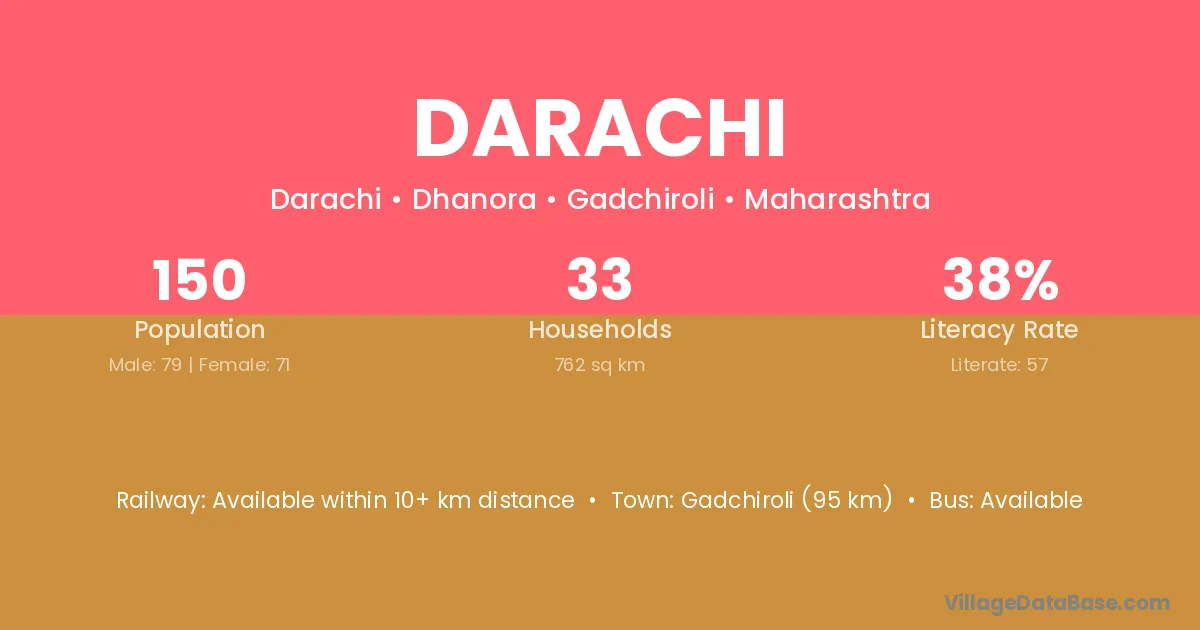 Gadchiroli (95 km) is the nearest town to Darachi village for major economic activities and is located approximately 95 km away.