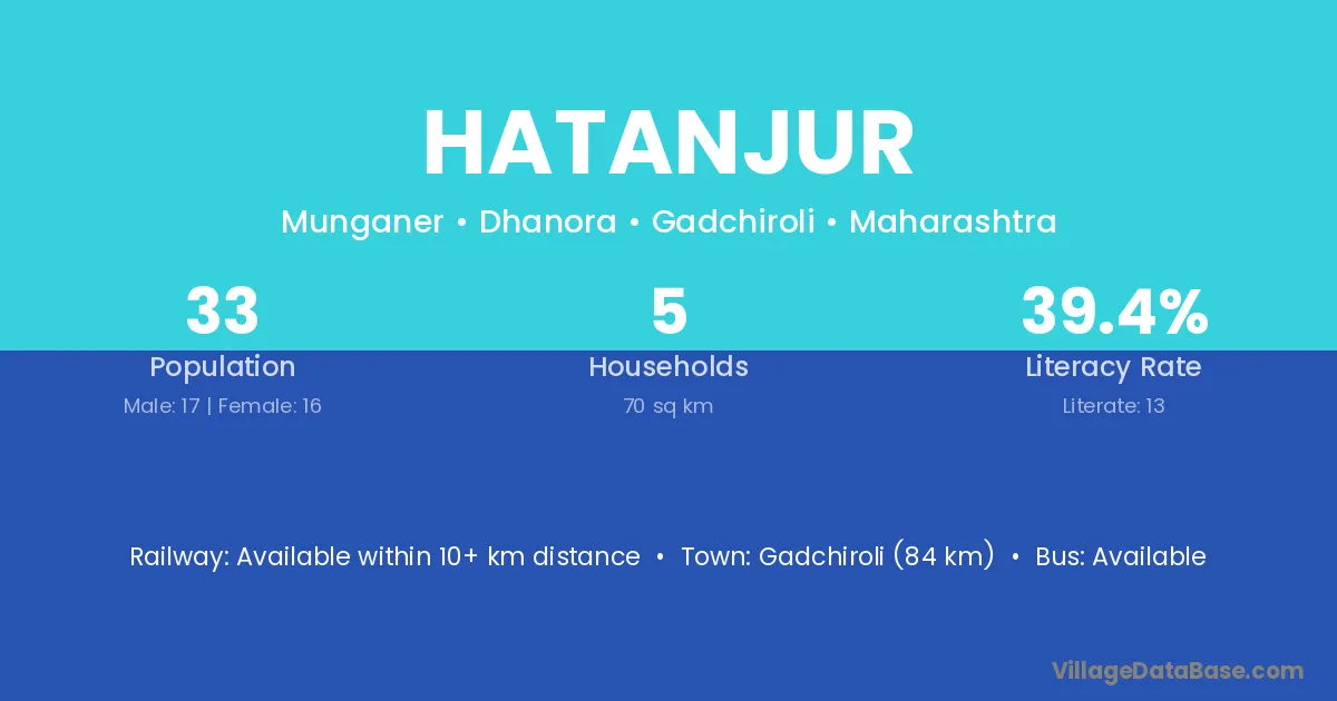 Gadchiroli (84 km) is the nearest town to Hatanjur village for major economic activities and is located approximately 84 km away.