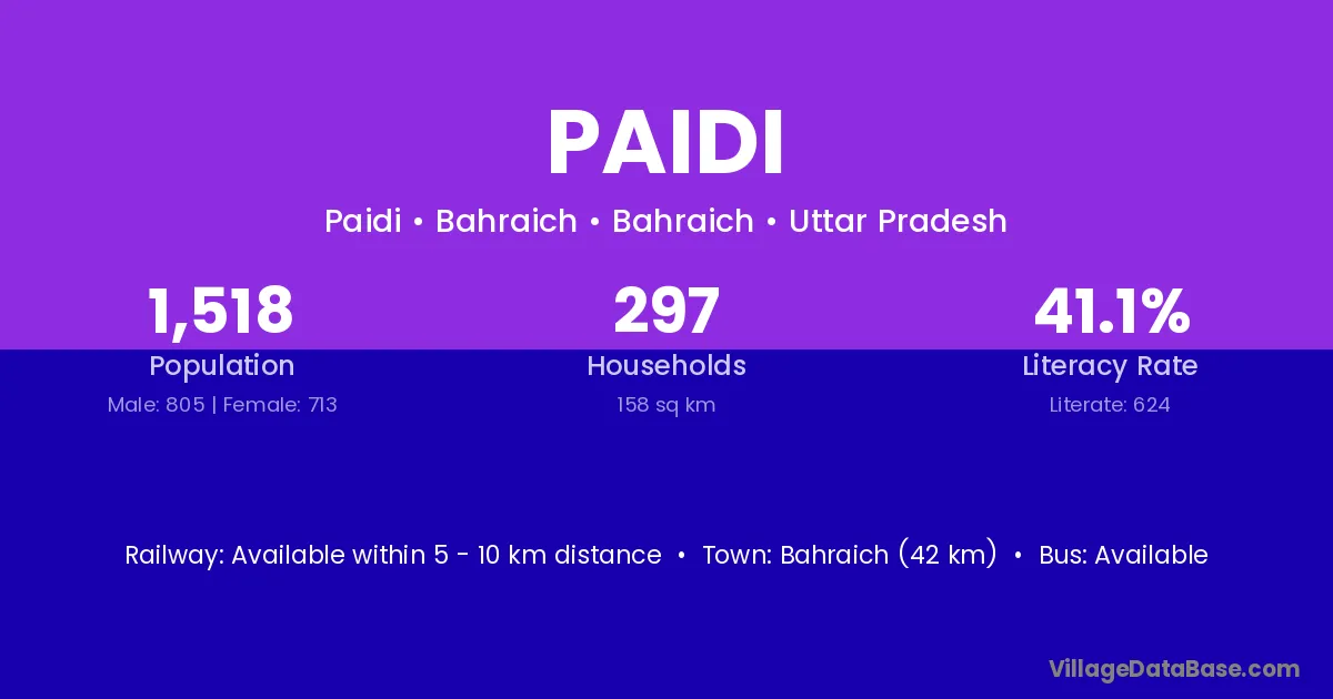 Paidi village has a total population of 535 people, of which 263 are males and 272 are females.