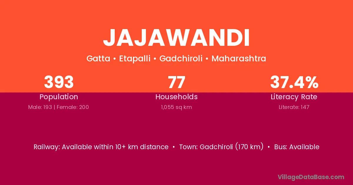 Gadchiroli (170 km) is the nearest town to Jajawandi village for major economic activities and is located approximately 170 km away.