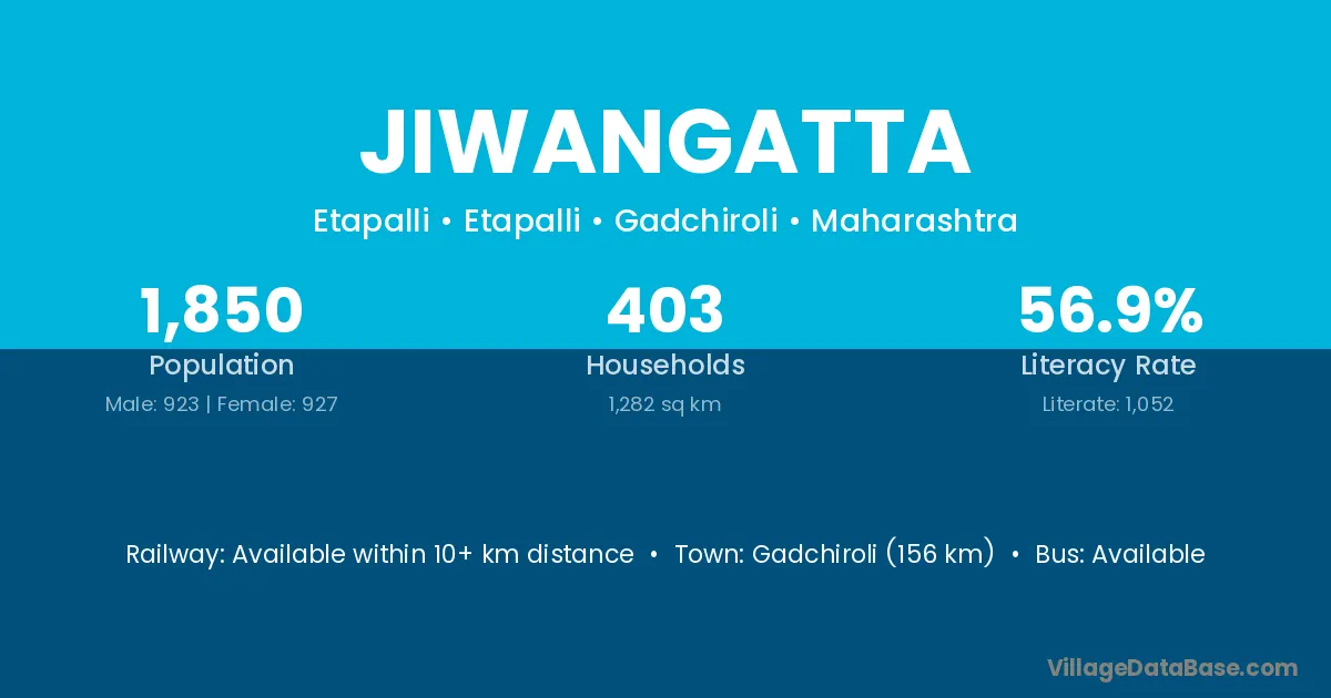 Gadchiroli (156 km) is the nearest town to Jiwangatta village for major economic activities and is located approximately 156 km away.